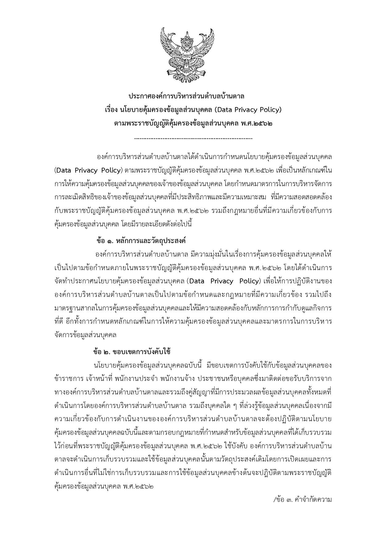 ด้วยองค์การบริหารส่วนตำบลบ้านตาลได้ดำเนินการกำหนดนโยบายคุ้มครองข้อมูลส่วนบุคคล ( Data Privacy Policy ) ตามพระราชบัญญัติคุ้มครองข้อมูลส่วนบุคคล พ.ศ.๒๕๖๒ เพื่อเป็นหลักเกณฑ์ในการให้ความคุ้มครองข้อมูลส่วนบุคคลของเจ้าของข้อมูลส่วนบุคคล โดยกำหนดมาตรการในการบริหารจัดการการละเมิดสิทธิของเจ้าของข้อมูลส่วนบุคคลที่มีประสิทธิภาพ และมีความเหมาะสมที่มีความสอดสอดคล้องกับพระราชบัญญัติคุ้มครองข้อมูลส่วนบุคคล พ.ศ.๒๕๖๒ รวมถึงกฎหมายอื่นที่มีความเกี่ยวข้องกับการคุ้มครองข้อมูลส่วนบุคคล โดยมีรายละเอียดดังต่อไปนี้