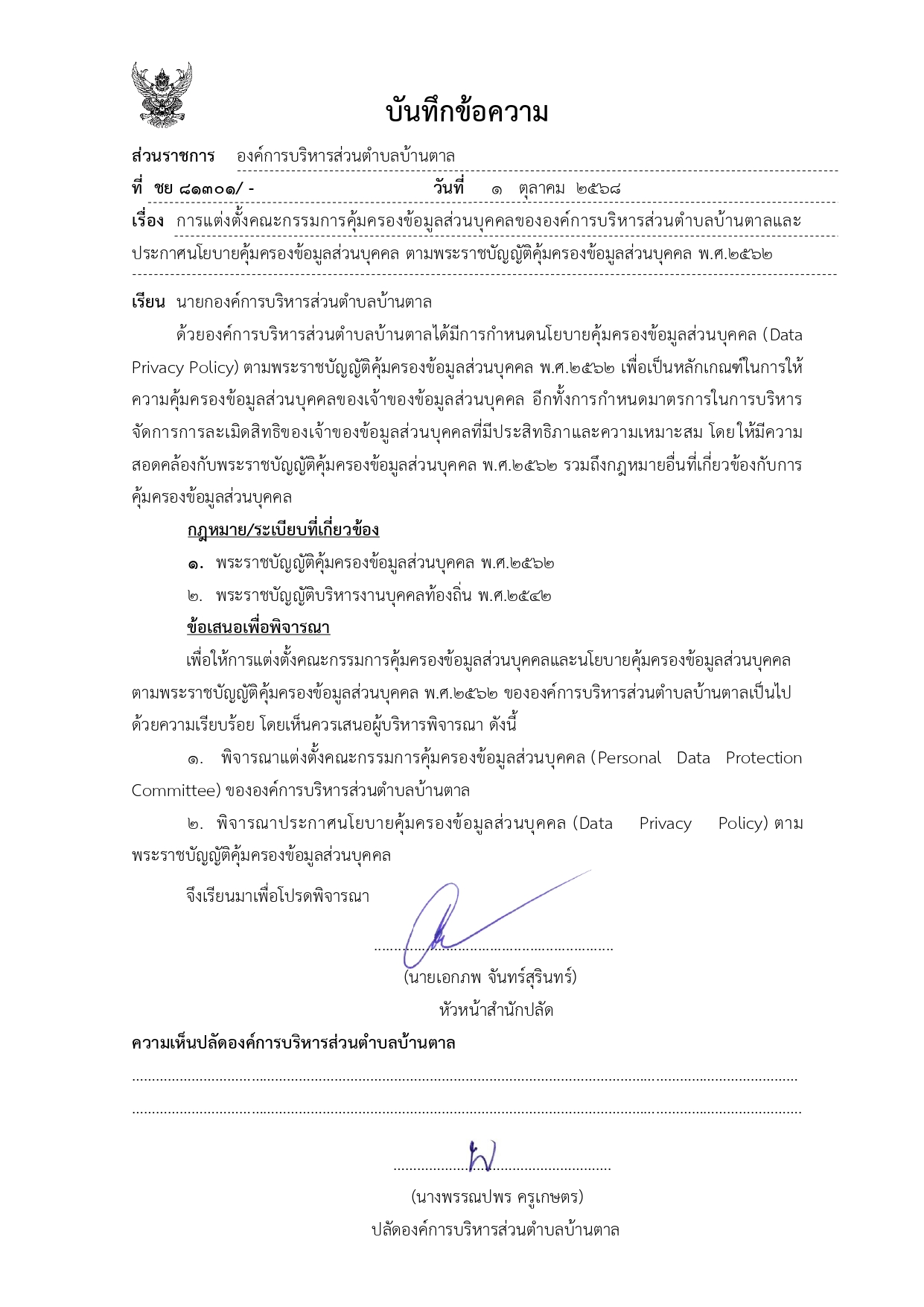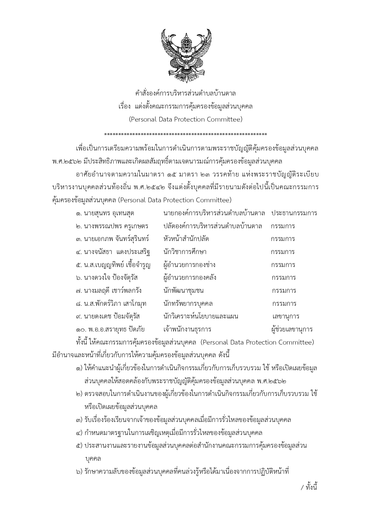 นโยบายคุ้มครองข้อมูลส่วนบุคคล (Personal Data Protection Committee)