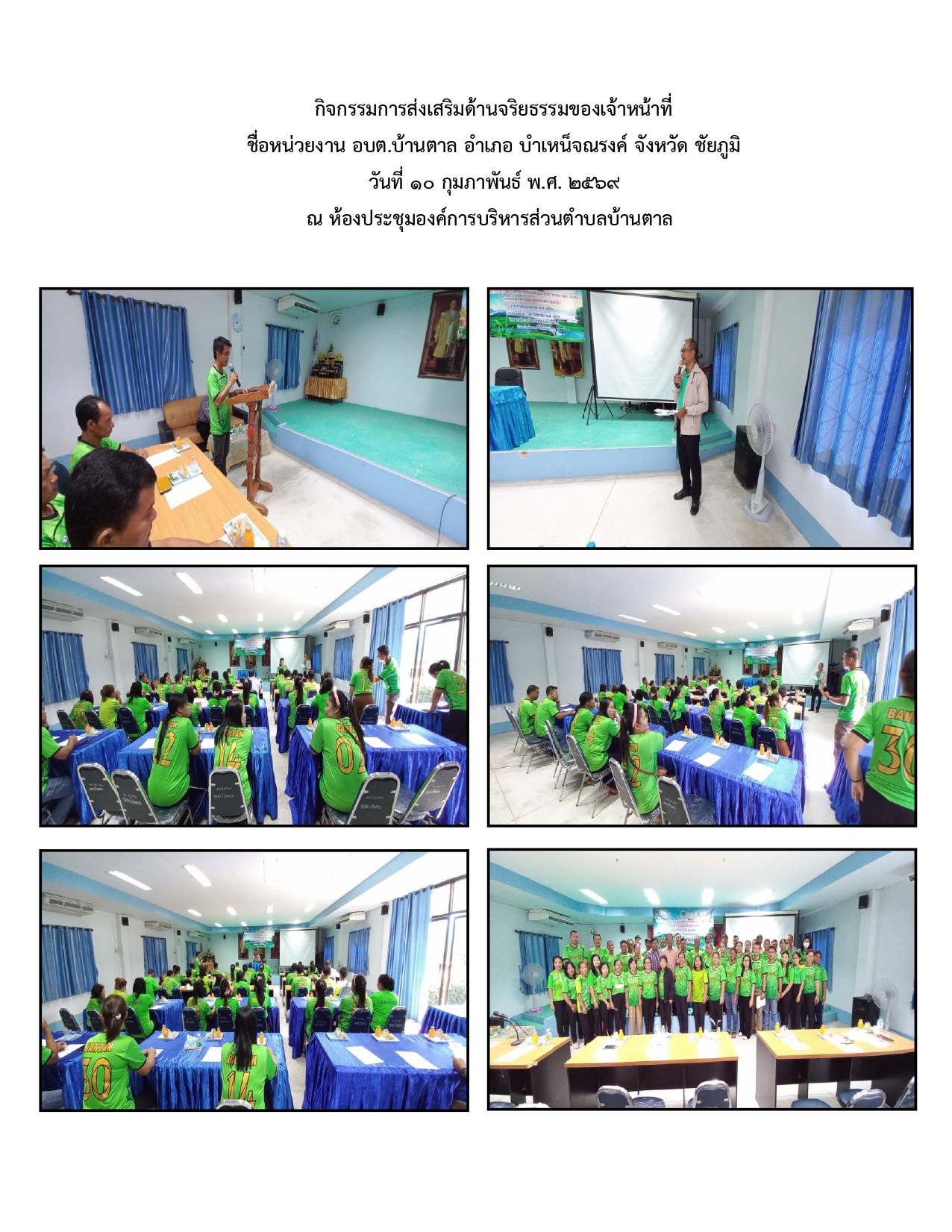กิจกรรมการส่งเสริมด้านจริยธรรมของเจ้าหน้าที่ ชื่อหน่วยงาน อบต.บ้านตาล อำเภอ บำเหน็จณรงค์ จังหวัด ชัยภูมิ