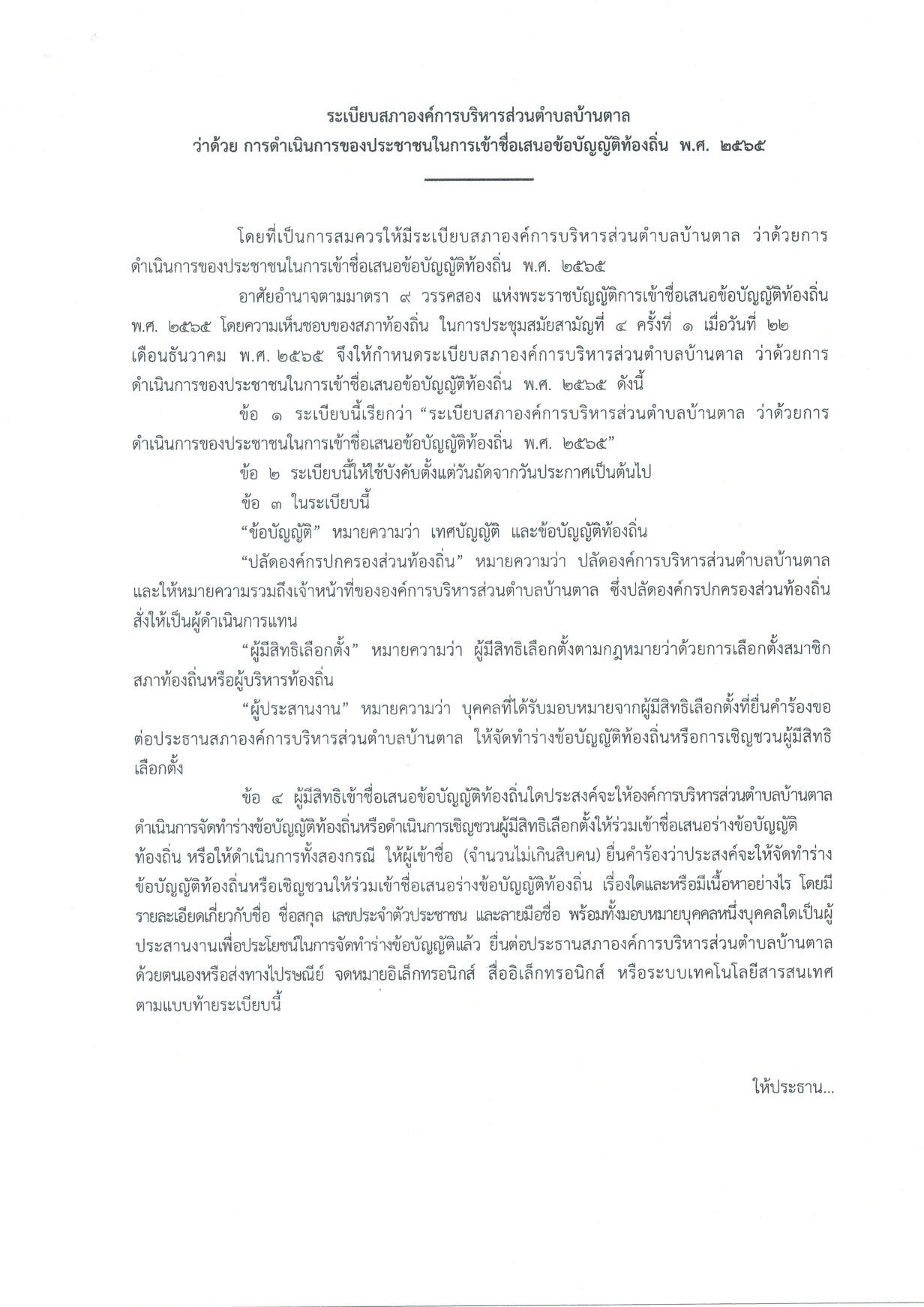 ระเบียบสภาองค์การบริหารส่วนตำบลบ้านตาล ว่าด้วยการดำเนินการของประชาชนในการเข้าชื่อเสนอข้อบัญญัติท้องถิ่น พ.ศ.๒๕๖๕